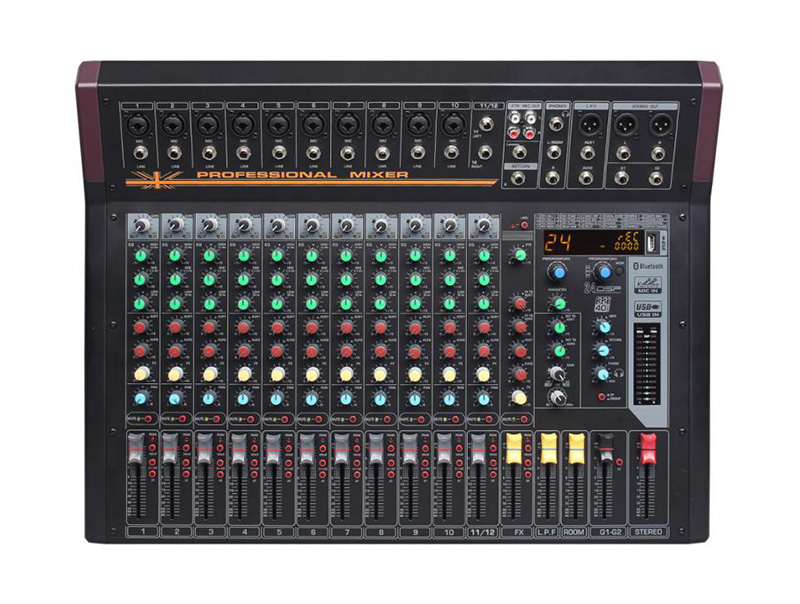 技術(shù)參數(shù) 12通道設(shè)計(jì),8路MIC單聲道+2路立體聲輸入 單聲通道100Hz低頻衰減開關(guān)(高通濾波) 每通道3段參量均衡,單聲道帶掃頻 4輔助編組輸出,2推子前折返,1衰減后輔助,1衰減后效果 3組...